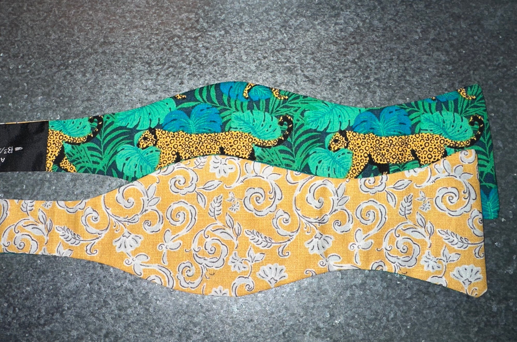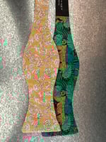 Self tie bow tie with floral and leopard print.
